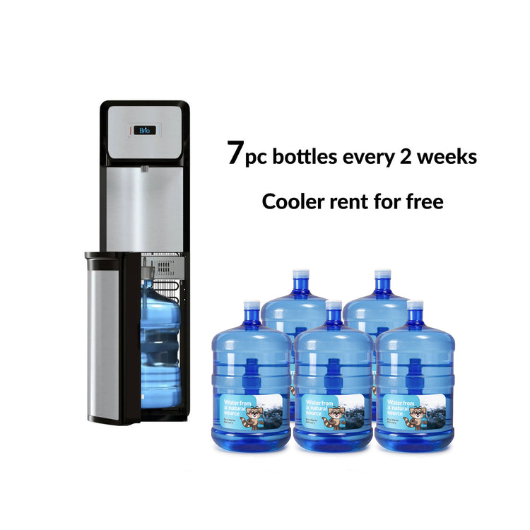 Payment is charged once a month! Plan includes:Water for 5-10 employees (Refill empty bottles every week) Brio 600slim series touch cooler for rent included.
